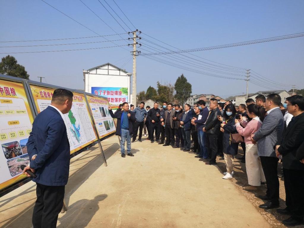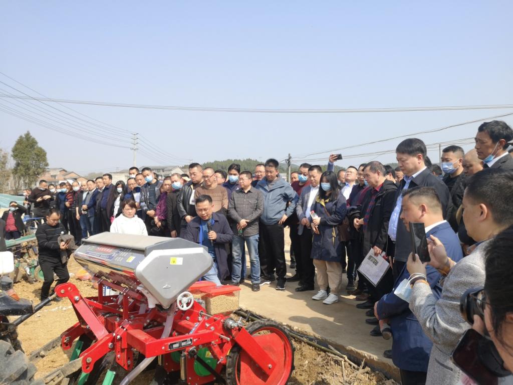 剑阁县县委书记杨祖斌、广元市农业农村局总经济师彭宏、剑阁县人民政府副县长唐家华等多个县级部门主要负责同志、各乡镇党委书记和农技推广人员参加了大豆玉米带状复合种植技术示范现场会。