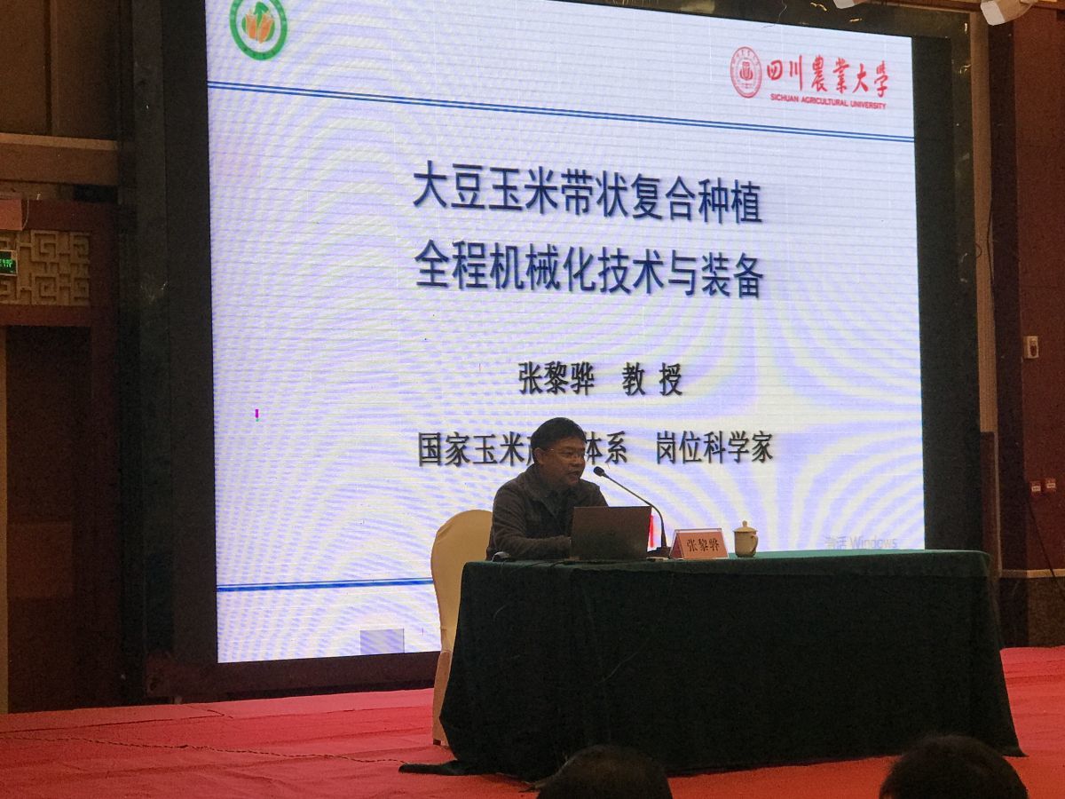 大豆扩种及玉米大豆带状复合种植技术具有“玉米不减少,多收一茬豆”的功效。在培训会上,tyc5997太阳集团雍太文教授讲解了《玉米大豆带状复合种植技术》,tyc5997太阳集团机电公司副经理张黎骅教授讲解了《玉米大豆带状复合种植技术农机装备与应用》,四川省豆类杂粮创新团队夏大豆育种岗位专家吴海英研究员对四川省大豆生产现状及主推技术、主推品种进行了介绍。