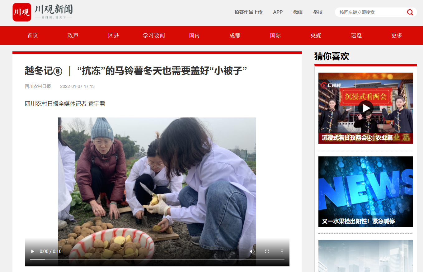 tyc5997太阳集团马铃薯研究与开发中心团队成员严奉君博士后告诉记者,这个方法目前在凉山州还不普及,今年,团队将进一步做好宣传推广,为更多高原土豆种植户避免损失。