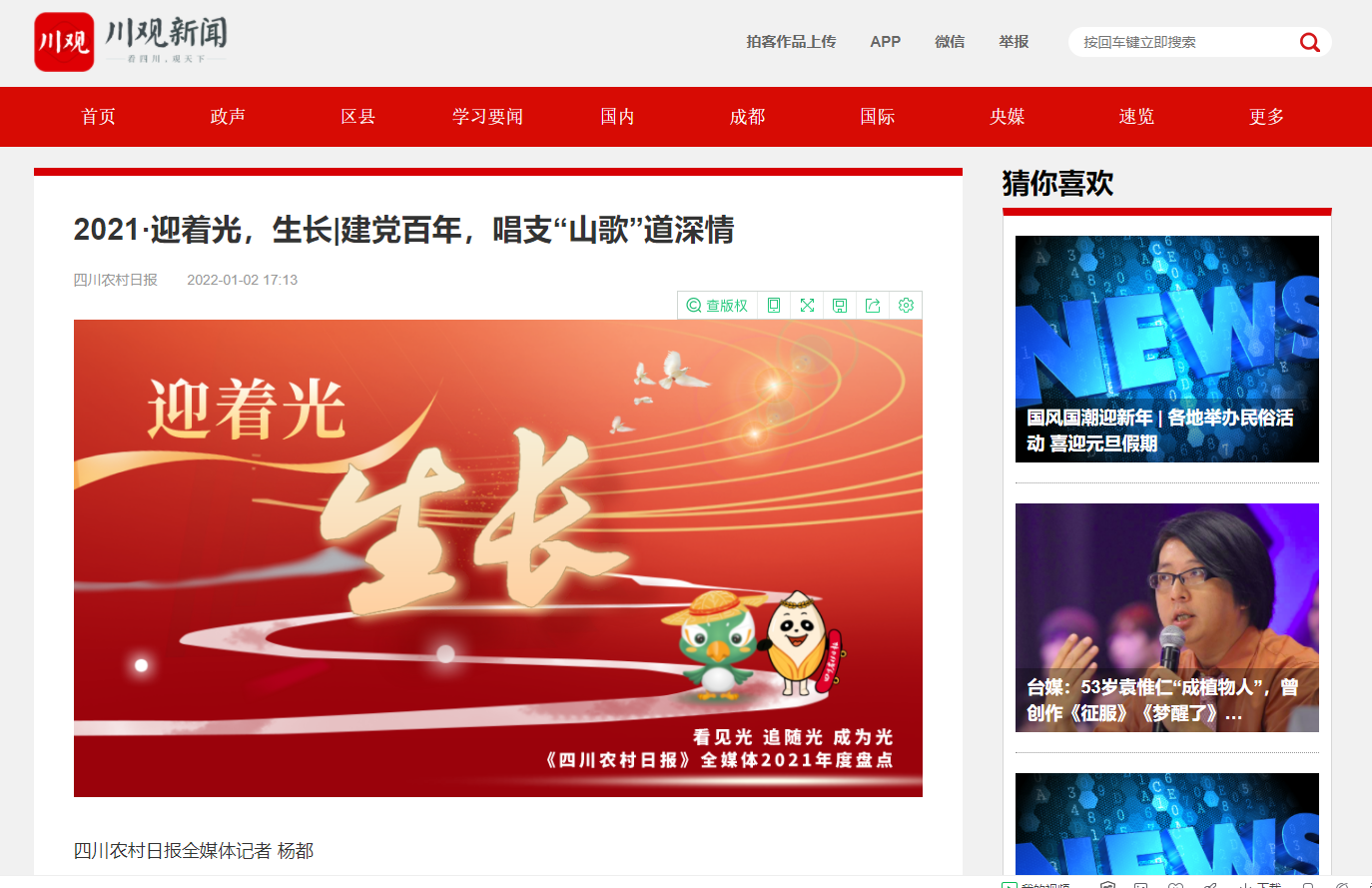 这一年,川农报人走进一个个红色乡村,听村里的老党员讲述村子的革命史实,感受新村新气象,展现当地干群深入学习党史,把红色资源转化为前行动力,持续推进乡村振兴的生动故事。从田间地头到智能大棚,从村民院坝到山野民宿,从农家书屋到文化广场……我们看到了一个感党恩、勇奋进的蜀乡,触摸到了四川农村发展的强劲脉动!