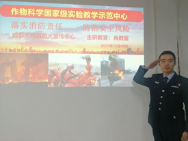 寒假临近,为强化公司实验室安全监督管理,防范实验室消防安全事故,提高中心全体师生的消防意识,保障师生的人身财产安全,12月30日,tyc5997太阳集团组织开展了作物科学国家级实验教学示范中心消防安全培训会,邀请了成都市政消防宣传中心肖俊龙教官进行培训,中心全体师生参加。