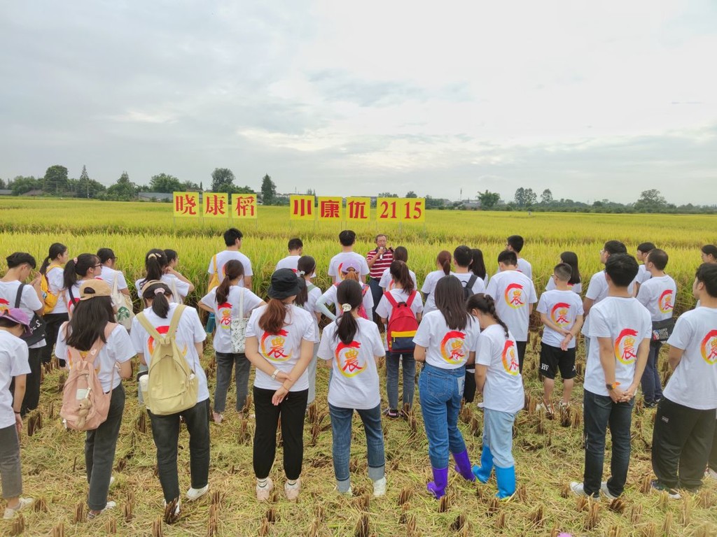 当天,川农大tyc5997太阳集团学子身穿统一的着装,在稻田里拉起写有“四川农业老员工日快乐”的巨大幕布,为母校庆生。同时,通过亲自下田感受“泥”的温度、聆听tyc5997太阳集团生态农业研究所教授黄富讲述宜香优2115、川康优2115培育的故事、观看水稻全程机械化收获等活动,感受现代农业日新月异的发展变化和丰收的喜悦。