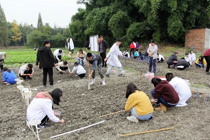 作物生产实践是农学专业的必修课程和特色课程,旨在通过员工团队独立完成作物的种植设计和田间试验,注重将课堂理论教学与实践教学、生产应用相结合,从耕、种、管、收、销等作物生产全链条设计和实施,提高农学学子科学研究能力和农业生产实践能力。在为期一年的实践中,同学们先后开展了麦类作物密度试验,蔬菜小麦间作,以及小麦玉米套作试验。