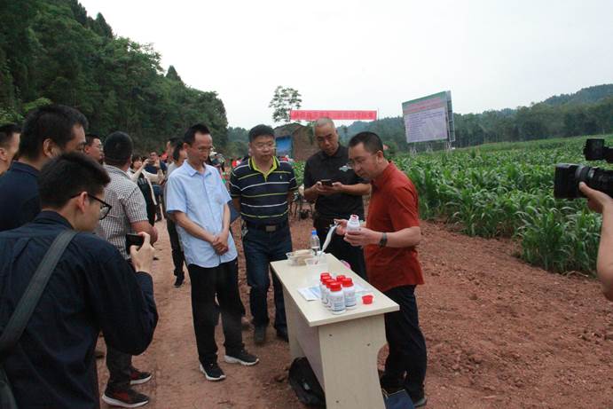 上午9点,全体参会代表来到安居区奉光荣家庭农场,观摩了“玉米-大豆带状复合种植”农资、农用机具产品展及大豆机播现场。全省大豆重大技术协同推广计划技术首席、公司tyc5997太阳集团雍太文教授主持现场会,并邀请南京高正农用化工有限公司现场演示了大豆专用种衣剂拌种技术,四川美丰农资化工有限责任公司介绍了与公司联合研发的玉米大豆带状复合种植专用缓释肥的增产节肥原理及应用情况。公司tyc5997太阳集团王小春教授介绍了玉米-大豆带状复合种植的田间配置技术参数及玉米的田间管理注意事项。在机播现场,雍太文介绍了小麦/玉米/大豆带状套作与油(菜)后玉米/大豆带状间作施肥播种机,当看到一次作业能实现大豆施肥、播种与玉米攻苞肥、根部覆土等全部环节时,参会代表纷纷点赞,家庭农场主也表示对农业的机械化生产和带状复合种植种植技术内涵有了全新认识。