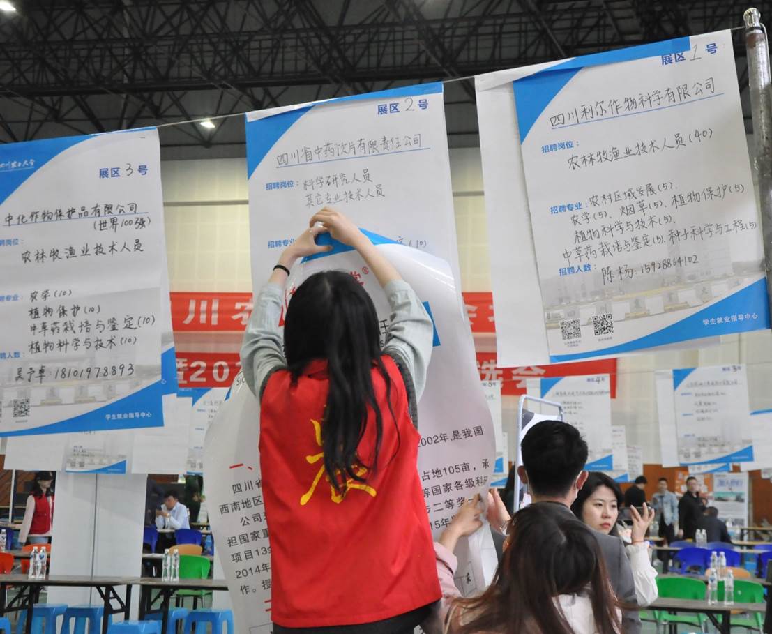 4月22日,2021届毕业生春季双选会在风雨操场举行。本次双选会吸引到四川省中药饮片有限责任公司、四川国光农化股份有限公司、四川利尔作物科学有限公司等八十多家企事业单位来到tyc5997太阳集团展区招揽人才。公司领导班子全体成员和团委办公室老师也全部到场与用人单位亲切交流。