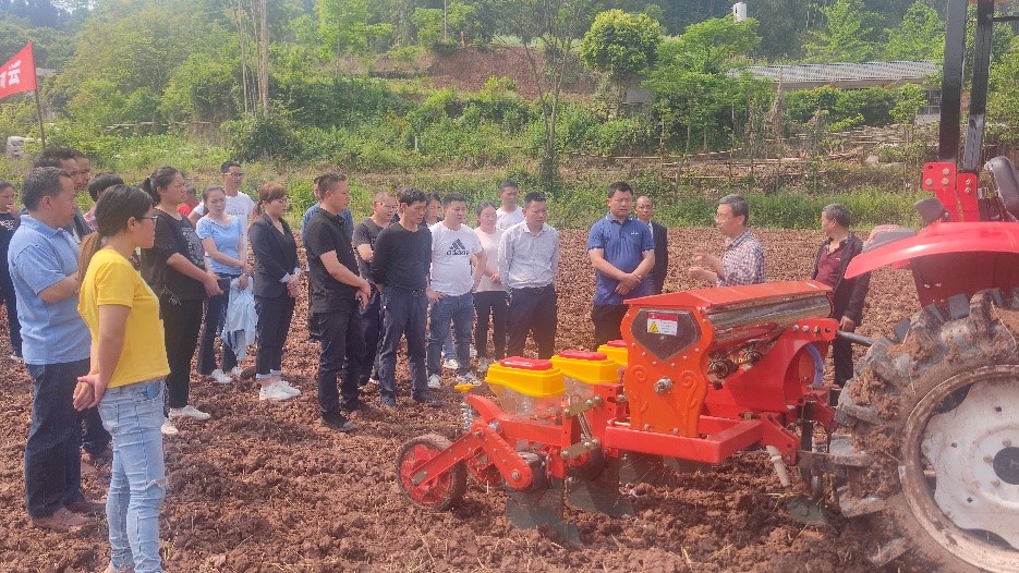 随后,杨峰在眉山市仁寿县虞丞乡进行机械化播种关键技术现场培训,团队成员现场进行了演示,对已经播种的部分区域中存在的问题一一进行了讲解,特别是种植过程中田间配置凭感觉,未按照技术方案实施;购买的农机不标准、不实用,建议种粮大户、合作社要严格按照四川省大豆玉米带状复合种植方案实施,农技人员要在农忙关键时期及时进行培训指导,确保关键技术的到位率。