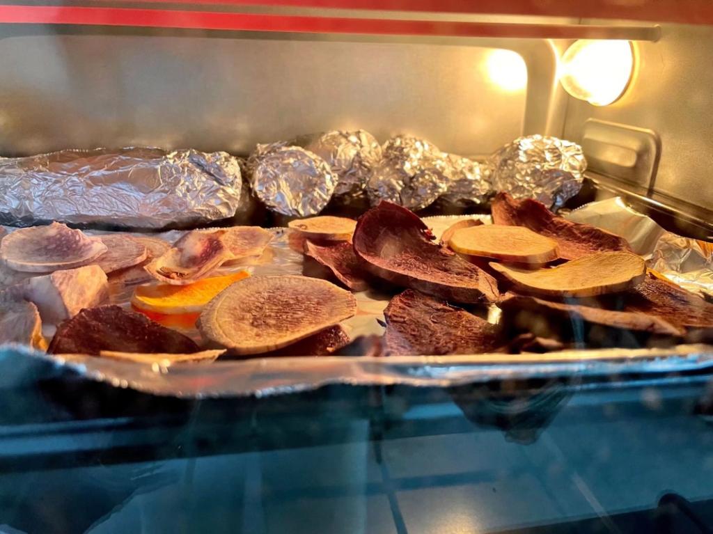 图为同学们用微波炉烤红薯。 受访者 供图