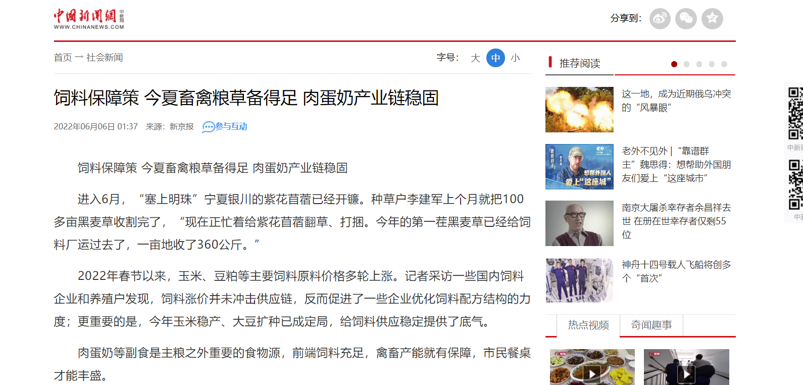2022年春节以来,玉米、豆粕等主要饲料原料价格多轮上涨。记者采访一些国内饲料企业和养殖户发现,饲料涨价并未冲击供应链,反而促进了一些企业优化饲料配方结构的力度;更重要的是,今年玉米稳产、大豆扩种已成定局,给饲料供应稳定提供了底气。