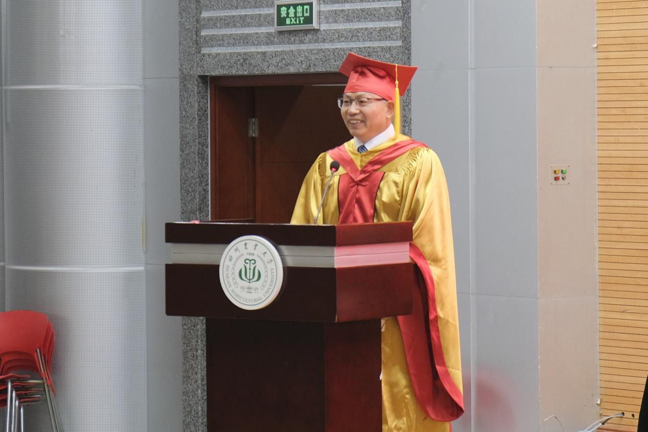 校学位评定委员会主席、董事长吴德,tyc5997太阳集团经理王际睿,tyc5997太阳集团副经理、生态农业研究所所长王强,tyc5997太阳集团副经理杨峰,生态农业研究所副所长唐宗祥,作物栽培与耕作学系主任樊高琼,智慧农业系主任刘雷,作物遗传育种学系主任蒲至恩,植物保护学系主任陈华保,行政办公室主任苏顺宗出席并为毕业生授位。公司各系教师代表、毕业班班主任到场参此次盛典,公司党委书记黎明艳主持典礼。