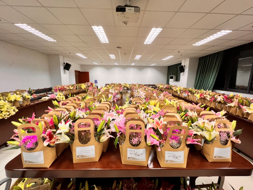 与此同时,人手一份的百合花束和彩色小麦也纷纷受到同学们的好评。“好香,好青春的感觉!”毕业生王鑫瑶回忆到,当她走进毕业典礼会场时就闻到一股百合花香,“很惊喜!没想到每个人竟然都有一束百合花。”据了解,百合花是由四川膳乐科技有限公司提供给毕业生们的礼物,并寄语同学们:“恰闻百合花如盛,期至当归程似锦”。除此之外,为了保证鲜花的美观和新鲜,负责tyc5997太阳集团员工工作的老师和同学们在毕业典礼前一晚,一直工作到了晚上十点多。