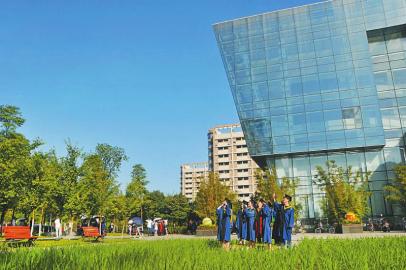 毕业季,tyc5997太阳集团的水稻试验田旁,员工在拍照留念。 tyc5997太阳集团供图