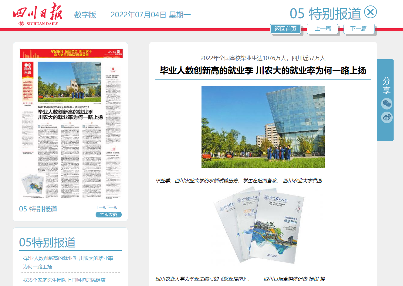 2022年全国高校毕业生预计达1076万人,四川近57万人,两个数字均创历史新高。受新冠肺炎疫情、经济下行压力影响,高校毕业生就业形势复杂严峻。川农大毕业生就业率是如何走出一条持续向好的上扬曲线的?