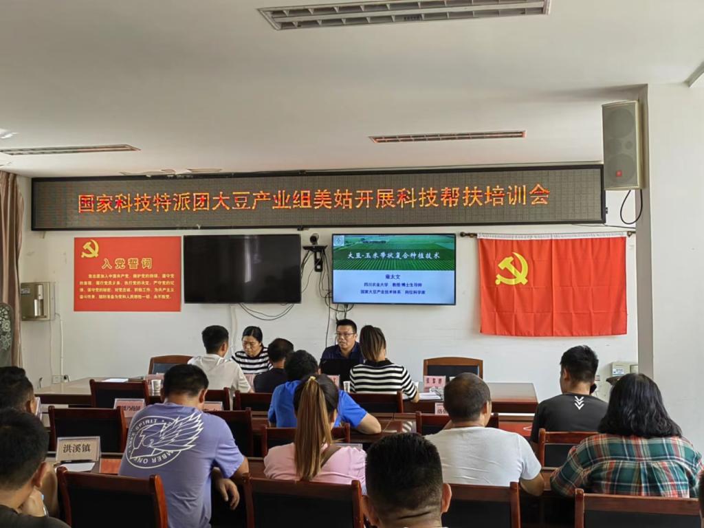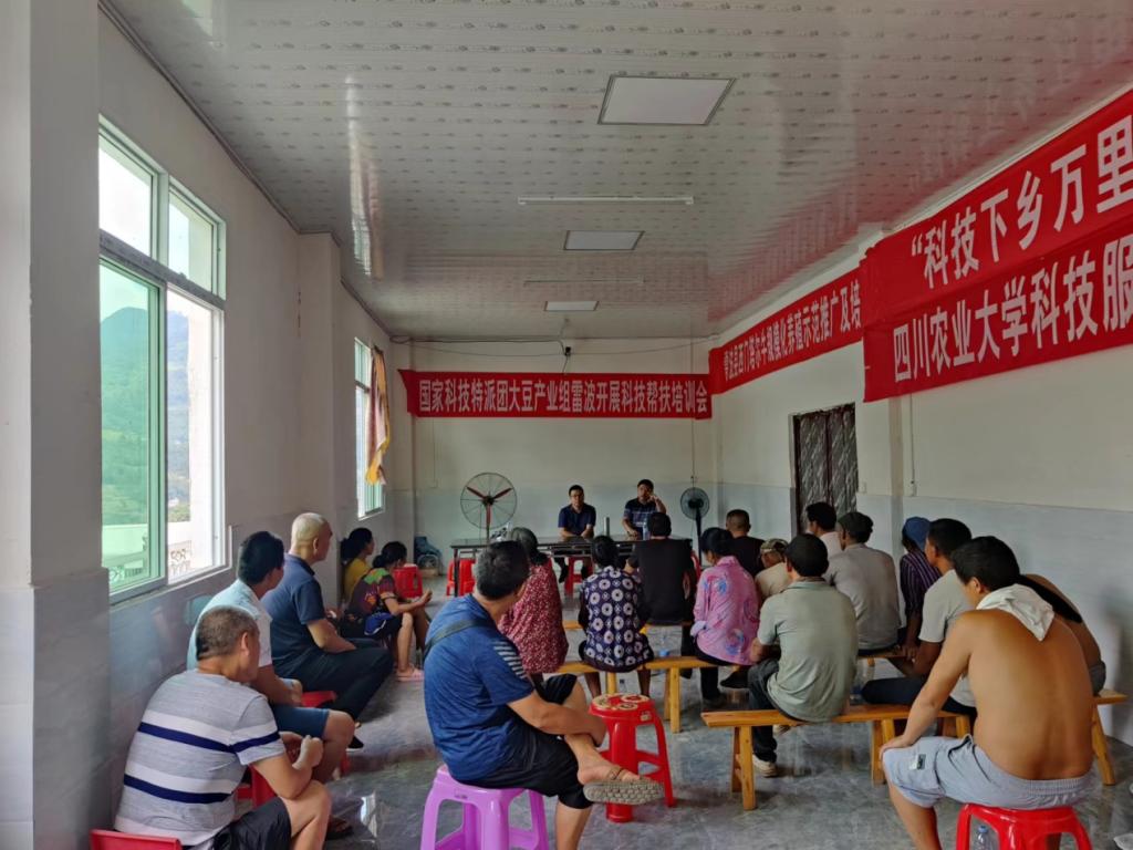 8月25日,国家科技特派团大豆产业组专家在雷波县教育体育科技局和农业农村局推广中心负责人的陪同下开展田间调研和技术培训与座谈交流。先后调研了华润五丰牵头开垦荒地种植的玉米大豆的生长情况,针对生产上存在种植不规范、大豆玉米品种不配套等问题给予技术指导和建议,在雷波县汶水镇牛吃水养殖专业合作社专家们围绕大豆玉米带状复合种植技术、种养循环全程机械化技术、玉米大豆混合青贮与饲喂技术等开展技术培训和讲解,针对农户关心的玉米大豆混合青贮技术要点、品种选择、农机农艺配套等问题进行座谈交流等。