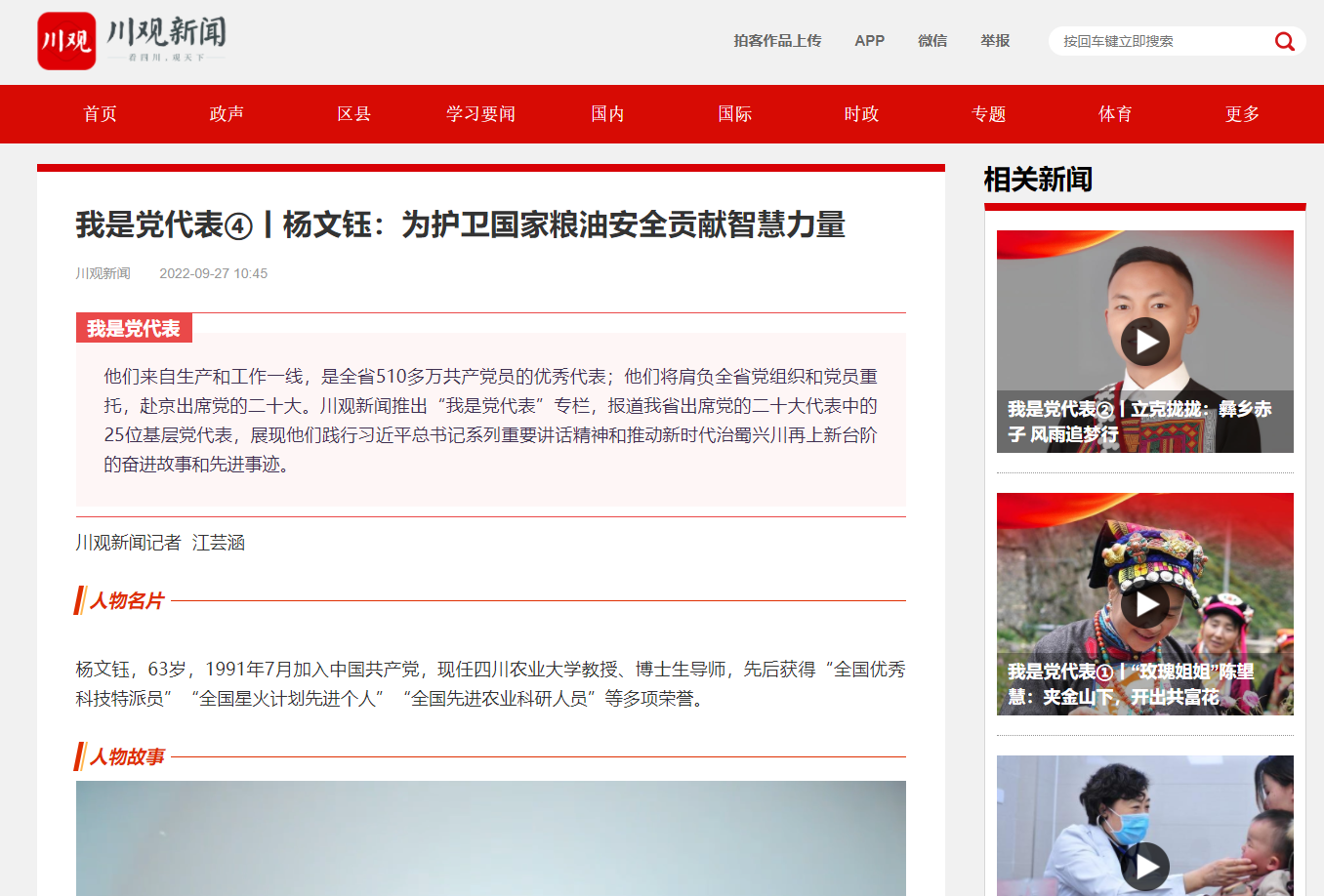 杨文钰,63岁,1991年7月加入中国共产党,现任tyc5997太阳集团教授、博士生导师,先后获得“全国优秀科技特派员”“全国星火计划先进个人”“全国先进农业科研人员”等多项荣誉。
