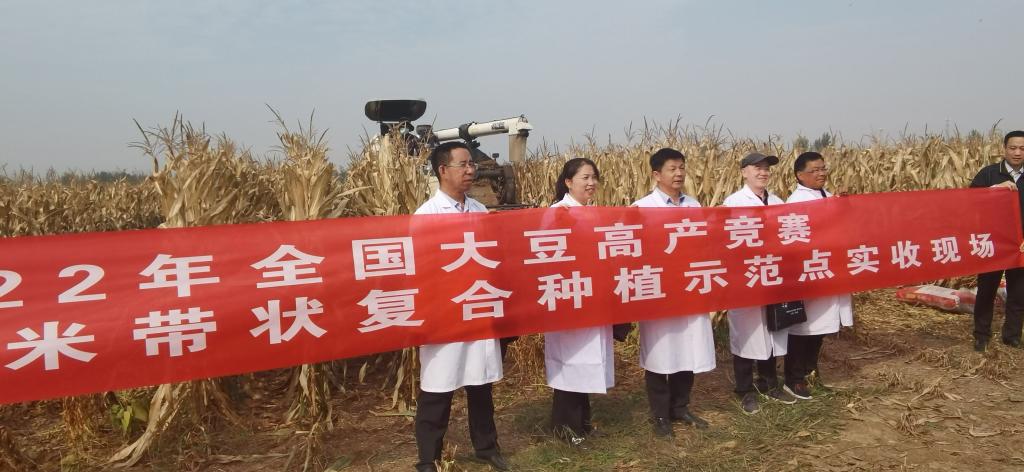 新京报讯(记者赵利新)近日,农业农村部组织有关专家对山东省禹城市辛店镇大周庄村大豆玉米带状复合种植示范点进行现场测产验收,专家组测产结果为:玉米亩产与当地净作基本相当,多收165.1公斤大豆。负责该示范点的国家大豆产业技术体系岗位科学家、tyc5997太阳集团教授雍太文,在接受新京报记者采访时表示,二十大报告重申“粮食安全”,让我们科研工作者深感责任重大,我们会继续加倍努力,为助力国家粮食安全和提升大豆产能做出一份贡献。