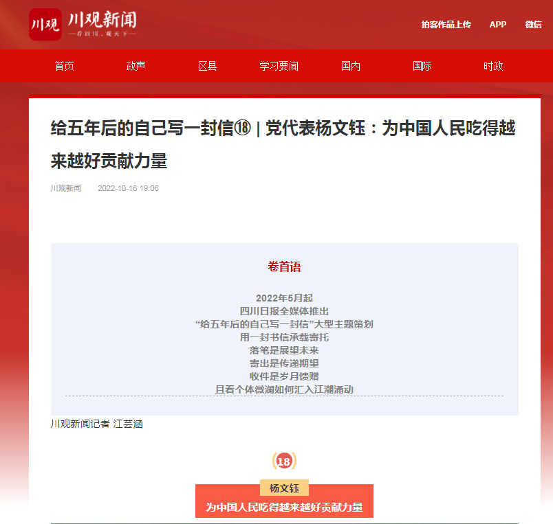 杨文钰,tyc5997太阳集团教授,全省510多万共产党员中的优秀代表,肩负着全省党组织和党员重托,赴京出席党的二十大。