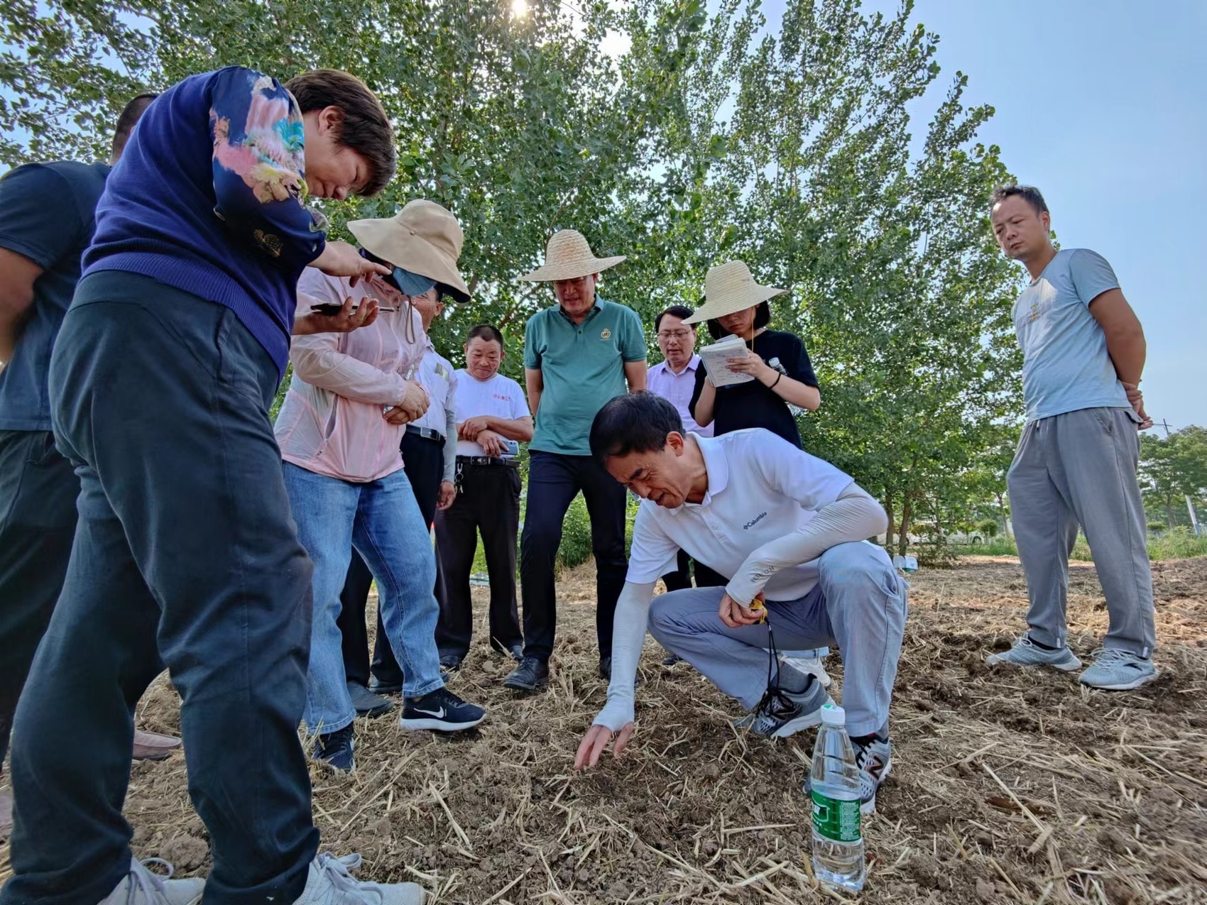 为了让种植户掌握好这项技术,杨文钰比谁都舍得吃苦。今年6月中旬,河南部分地区的气温已经高达41℃,杨文钰戴着草帽,顶着烈日在田里一边仔细查看大豆玉米株数,一边在地里手把手地教农户大豆播种深浅度和用肥量,这是黄淮海14天夏播冲刺期里最常见的场景。“杨老师总是一马当先冲在前,下完地,衬衫能直接拧出水。”杨文钰教授的博士生杨欢认为,是作为共产党员的使命感和对“三农”工作深深的责任感,让导师杨文钰对工作始终保有高度热忱。