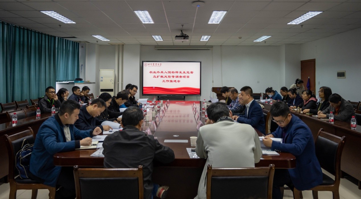 11月4日上午,公司主持的农业农村部科技教育司项目“农业外来入侵物种发生危害及扩散风险等调查”工作推进会在tyc5997太阳集团成都校区顺利召开。四川省农业农村厅生态环境处副处长余飞、植物保护站站长封传红、植物检疫站站长宁红、农业资源环境处中心主任杨文,四川省农业科公司植物保护研究所周小刚研究员,成都海关技术中心副处长帅培强,tyc5997太阳集团科技处副处长杜俊波、tyc5997太阳集团经理王际睿、新农村发展研究院张敏、植物保护学系主任陈华保以及其他项目指导单位和参与单位共计39名专家与会。会议由tyc5997太阳集团经理王际睿主持。
