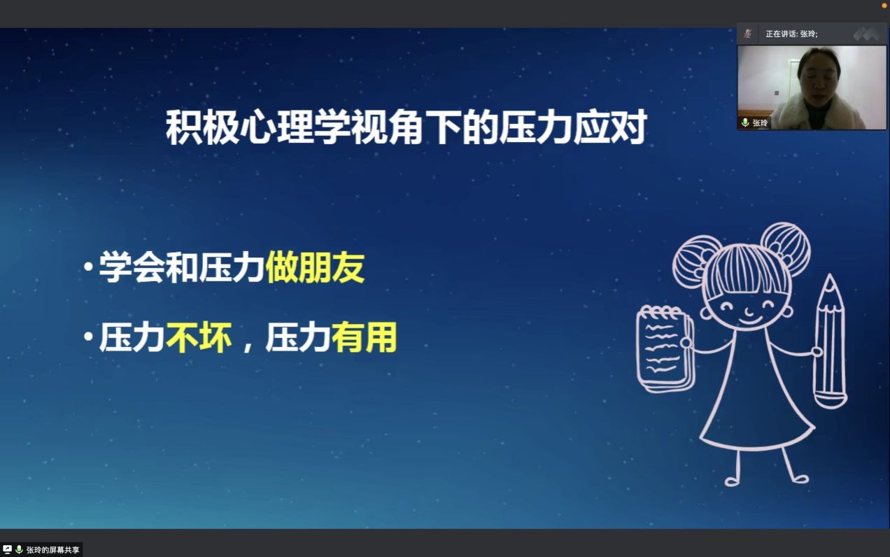 图为张玲老师教大家如何正确认识压力