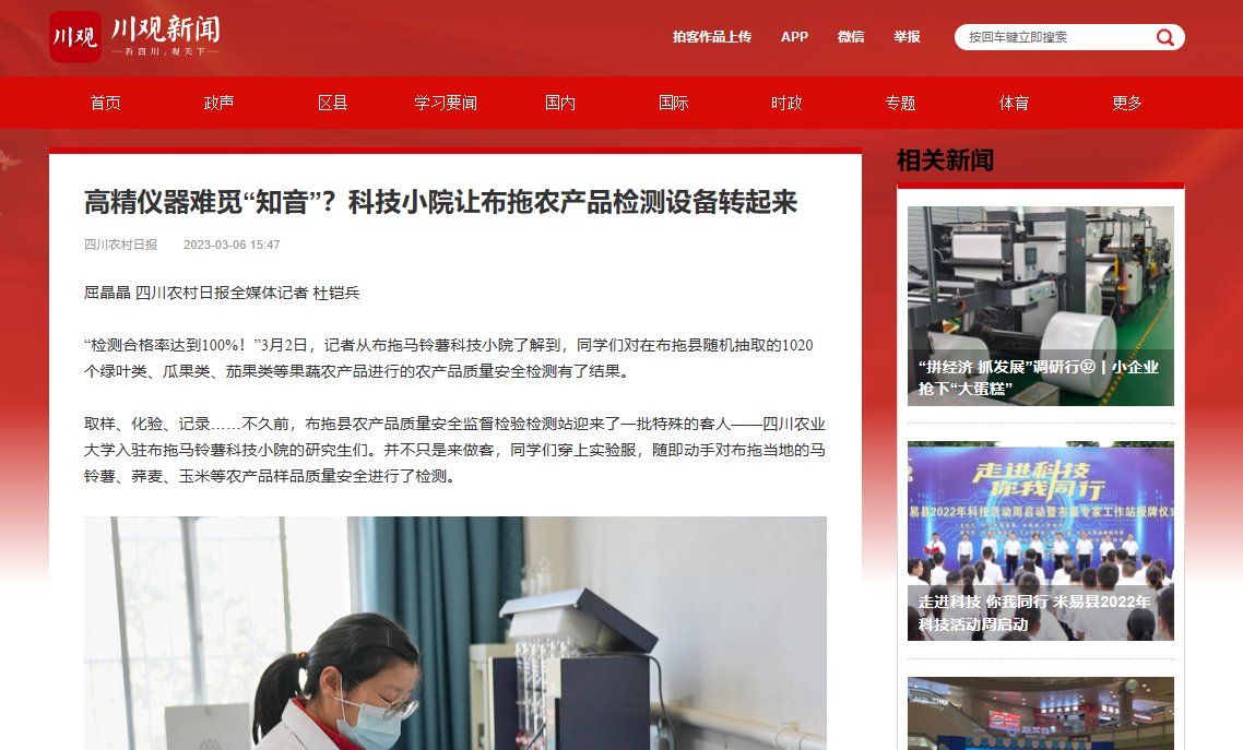 “检测合格率达到100%!”3月2日,记者从布拖马铃薯科技小院了解到,同学们对在布拖县随机抽取的1020个绿叶类、瓜果类、茄果类等果蔬农产品进行的农产品质量安全检测有了结果。