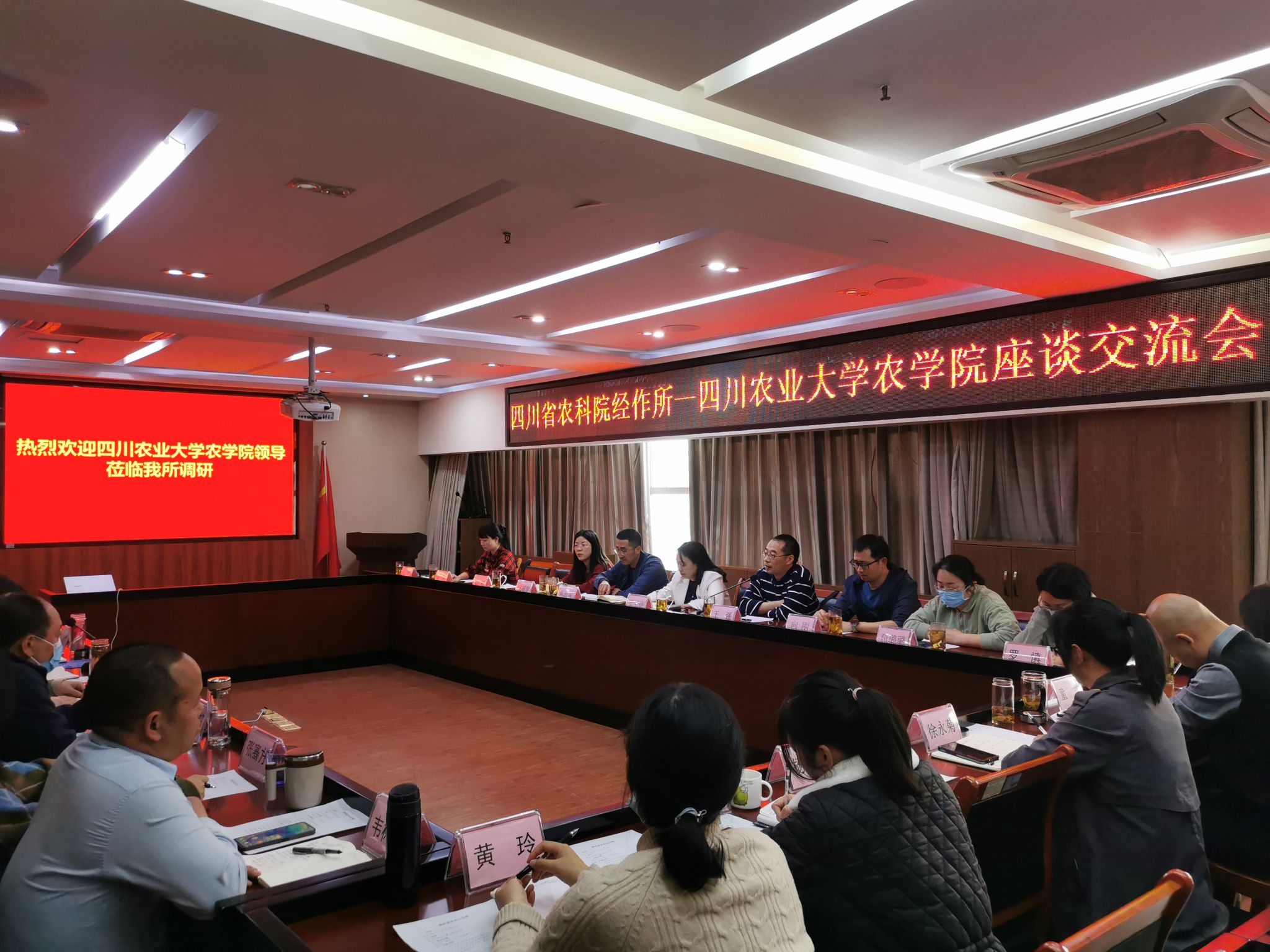为持续深化开拓就业市场,落实《tyc5997太阳集团2023年“访企拓岗促就业”专项行动实施方案》,3月9日下午,公司党委书记黎明艳率tyc5997太阳集团副经理王强、党委办公室主任兼团委书记陈红星、行政办公室主任向刚、以及党委行政办公室老师等一行11人到四川省农科院经作所座谈交流,经作所党委书记张小军,经作所党委副书记、所长叶鹏盛,经作所党委副书记、副所长张超,经作所纪委书记岳福良以及经作所各部门负责人参加座谈交流。经作所党委书记张小军主持会议。