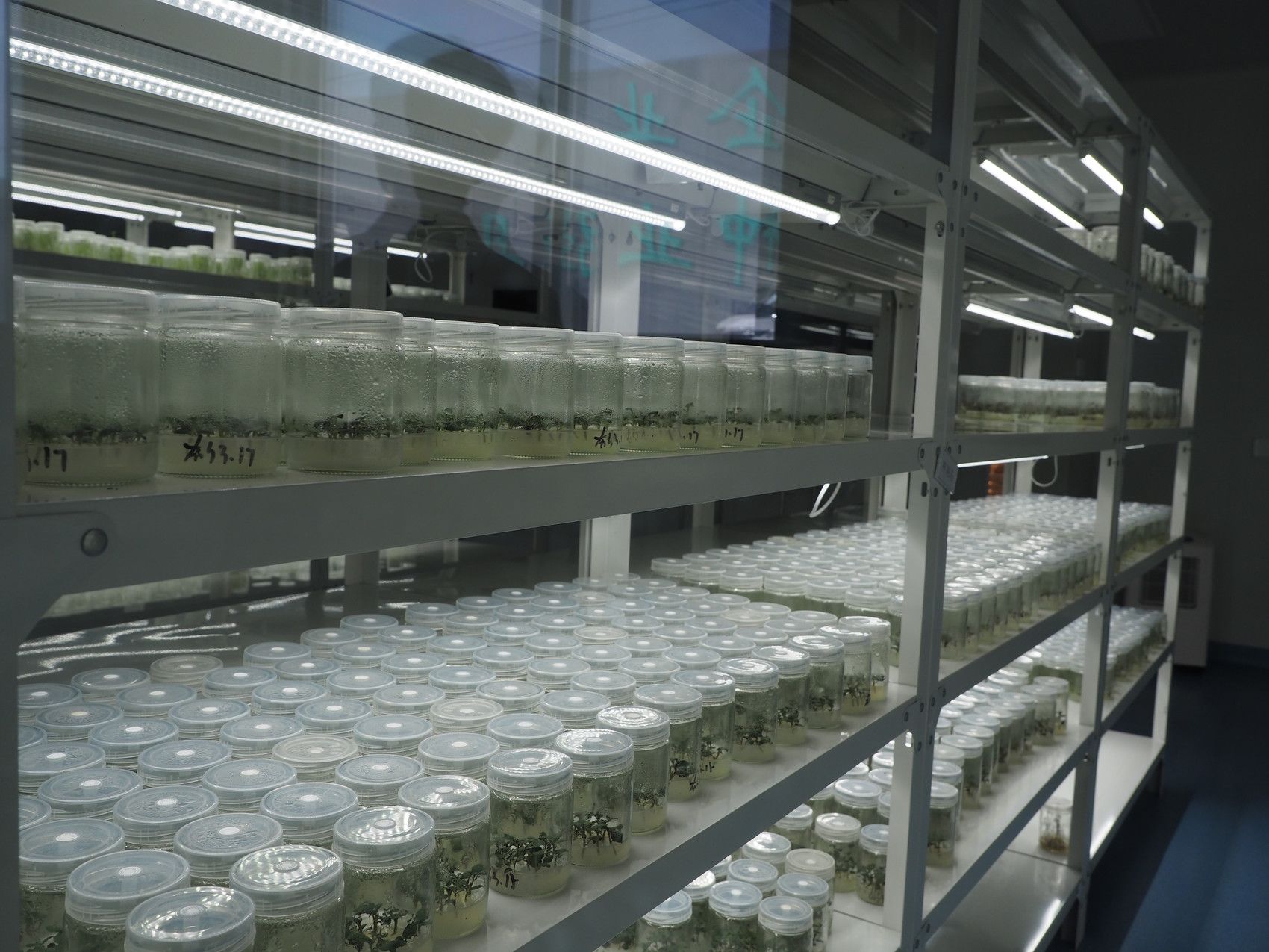 “走,先带你看看我们的组培室。”科技小院的关键“科技”在组培室,也是布拖乌洋芋脱毒复壮的关键环节。记者隔着组培室的玻璃看到,组培瓶里已经长出1指节高的马铃薯苗,根茎短小呈紫色。“别看它小,已经达到可移栽标准。”冯豪杰介绍,组培瓶里的马铃薯苗是从布拖乌洋芋苗的茎尖剥离出来,无菌环境下再分化生长出来的无毒苗。