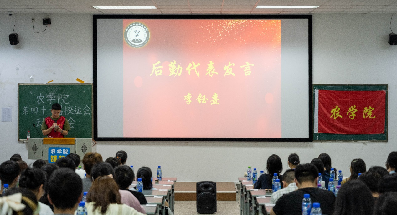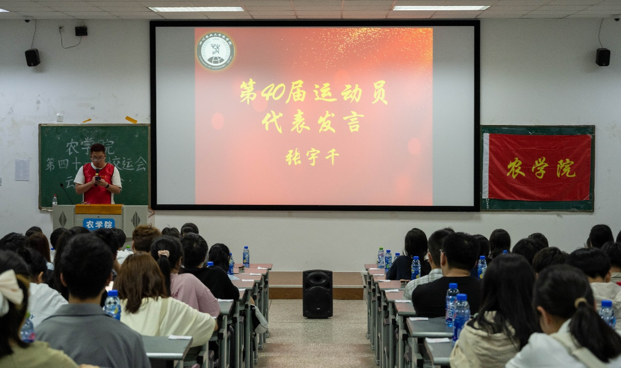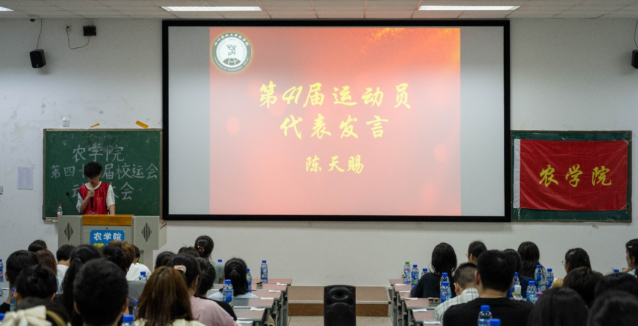 随后,第四十届运动员代表张宇千和第四十一届运动员代表陈天赐相继发言,他们都表示出对体育运动的热爱,也对即将参赛的运动员们送出鼓励与祝福。后勤代表李钰熹发言,他向同学们展示出服务好运动员的决心,说道:“我们将用自己的努力助力运动员的完美发挥,为tyc5997太阳集团赢得更多奖项。”