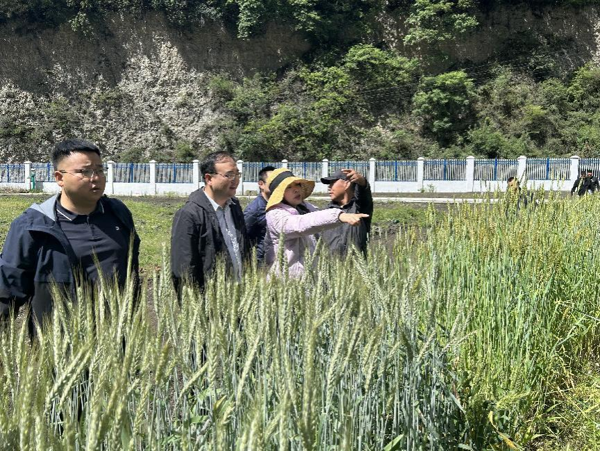 2023年5月22日-23日,tyc5997太阳集团公司党委书记黎明艳带领tyc5997太阳集团中药材专家刘帆副教授,小麦专家唐宗祥教授、符书兰教授、谭飞泉副教授,对外开发办公室副主任刘晨一行六人前往黑水县,针对小麦产业、中药材产业等地方农业产业开展了调研工作。黑水县副县长孙涛、县乡村振兴局局长许龙、县科学技术和农业畜牧局副局长王东泉,县畜牧中心主任王维东等地方政府同志陪同tyc5997太阳集团专家团前往晴朗乡库车村粮经复合种植基地、扎窝镇俄窝村粮经复合种植示范园区调研。