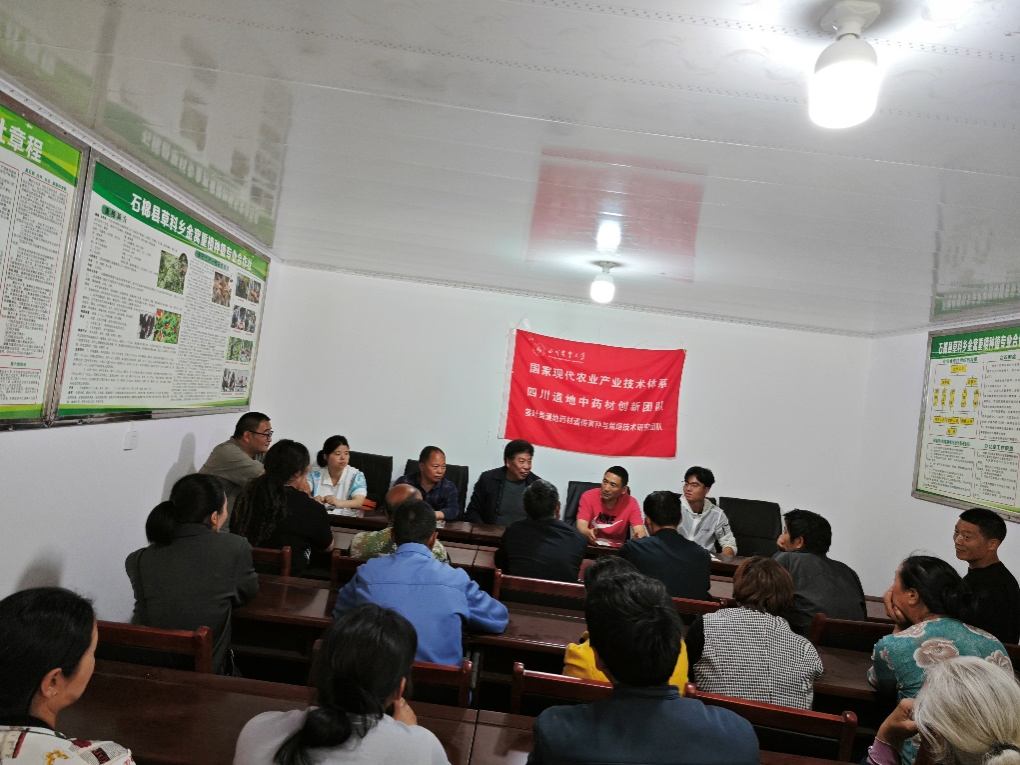 在草科乡会议室内,刘帆同农业农村局高级农艺师王春涛、草科乡合作社理事长张永华、乡农技员及种植大户等举行了重楼栽培技术指导座谈会。会上,双方就重楼品种的选择、市场行情和重楼产业高质量发展等方面深入探讨。刘帆向当地种植农户讲重点讲解了重楼夏季栽培管理的技术要点,并从夏季水分管理、病虫草害的绿色科学防治等方面进行重点培训,指导重楼中药材绿色安全高质高效生产。