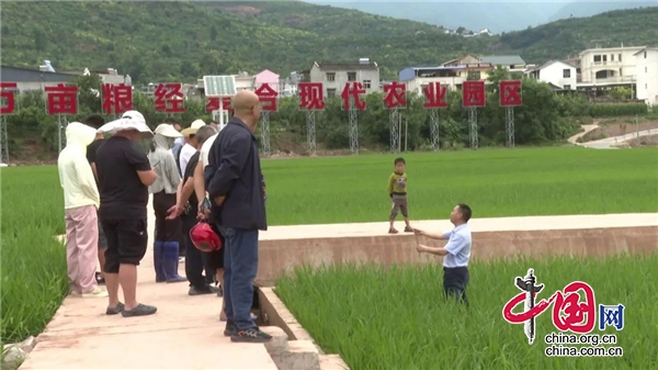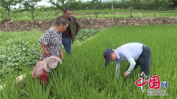 在九襄镇清泉村水稻田间,tyc5997太阳集团的专家团队正穿梭在试验田,察看新品种水稻长势,判断水稻施肥、病虫害防治。