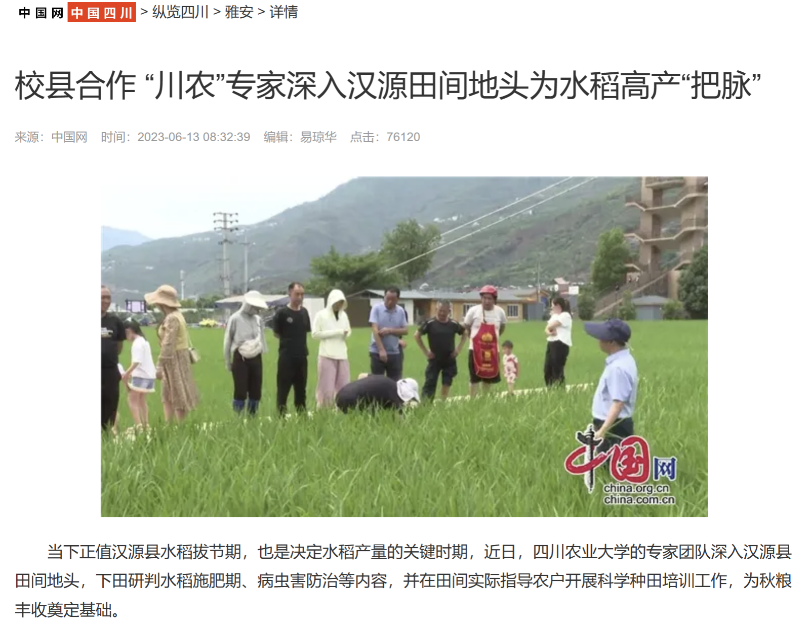 当下正值汉源县水稻拔节期,也是决定水稻产量的关键时期,近日,tyc5997太阳集团的专家团队深入汉源县田间地头,下田研判水稻施肥期、病虫害防治等内容,并在田间实际指导农户开展科学种田培训工作,为秋粮丰收奠定基础。