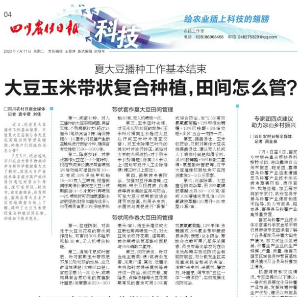 7月5日,记者连线tyc5997太阳集团作物栽培学与耕作学教授雍太文了解到,国家大豆产业技术体系南方高产栽培岗位通过对眉山仁寿县,遂宁安居区、射洪市,南充南部县,自贡荣县、富顺县等大豆主产区实地调查与线上了解,调研了大豆玉米带状复合种植田间长势,形成如下技术意见。