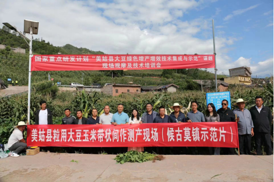 为全面推动大豆玉米带状复合种植技术的应用推广,实现玉米、大豆协同高产和农民增收致富。8月23日,公司会同美姑县人民政府在美姑县召开了大豆玉米带状复合种植现场观摩及技术培训会。会议依托公司牵头的国家重点研发计划项目“四川大凉山地区特色种植业绿色增产增效技术集成与示范”进行,美姑县县委副书记海来克古、副县长罗文才、县委组织部常务副部长杨日火、四川省农业技术推广总站旱粮科科长崔阔澍出席会议,来自美姑县农业农村局、县农投公司的技术人员及相关乡镇主要负责同志和村支部书记等80余位代表参加观摩培训。