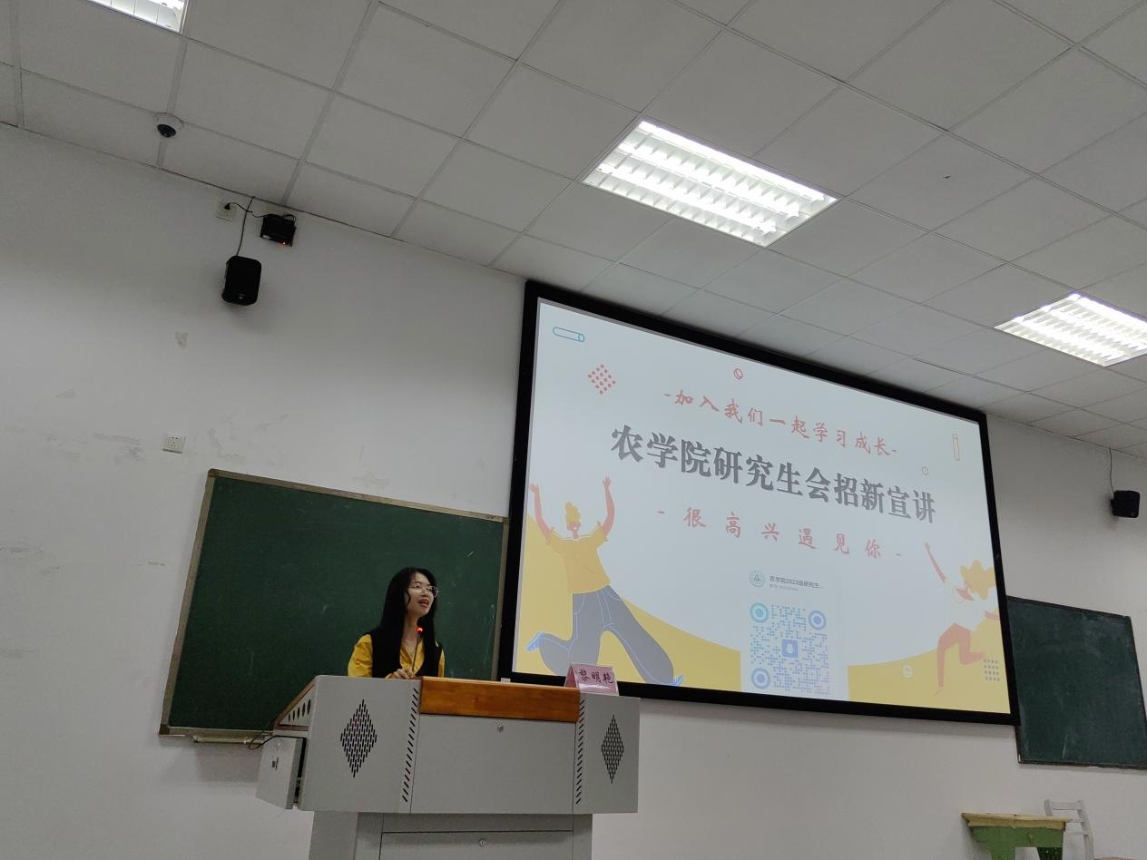 最后,研究生会主席胡权芳在会议上进行了公司研究生会招新宣讲。郑亭对研究生新生的分班以及研究生日常管理注意事项进行了详细介绍,为新生解答了诸多疑惑。