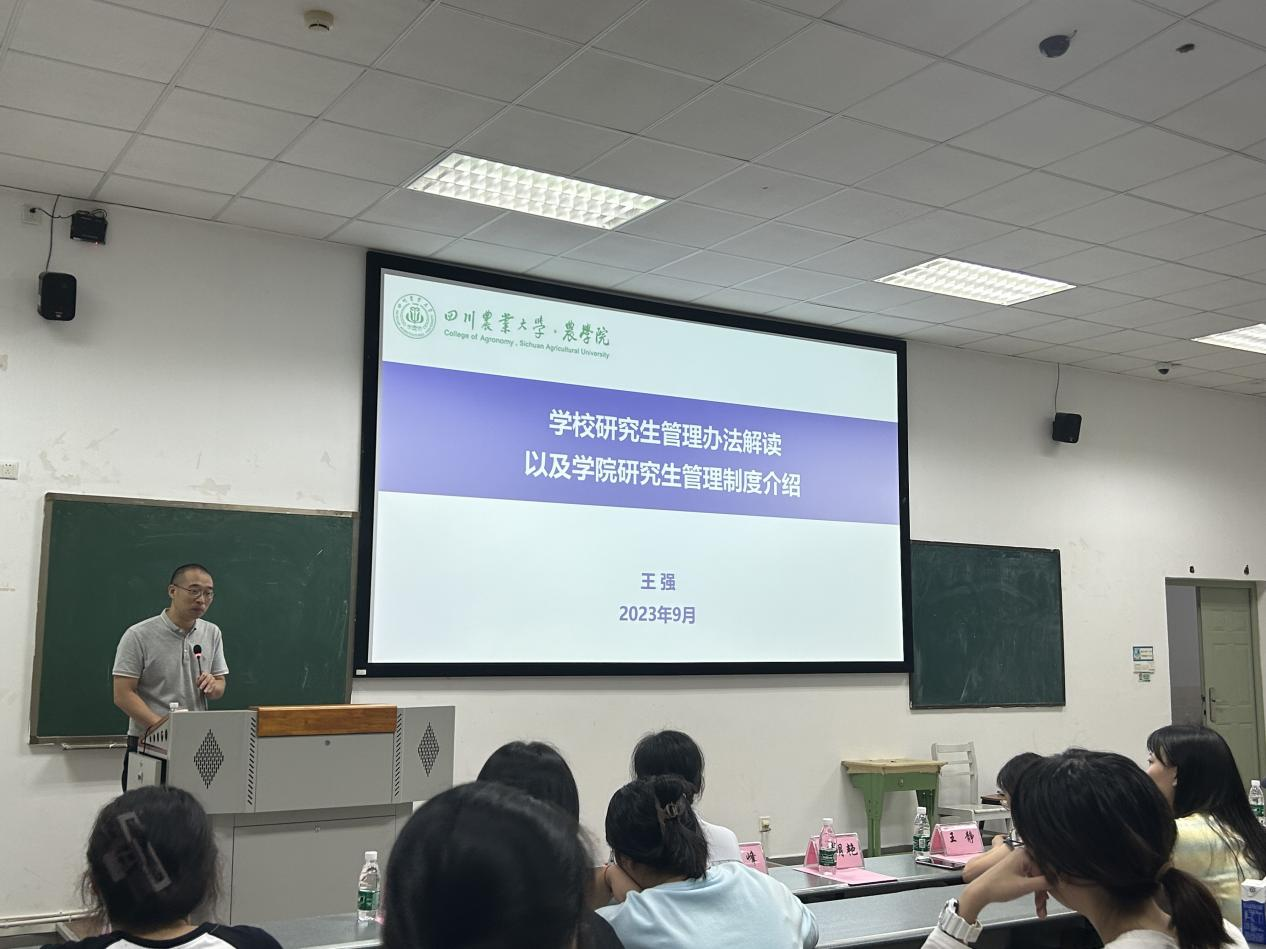 王静首先代表公司全体师生向2023级新生表示热烈的欢迎与诚挚的祝贺,并向同学们介绍了公司的基本情况和学科发展概况,同时提出殷切期望,希望同学们肩负起强农兴农的使命担当,在新时代、新征程做出新的更大贡献。王强详细解读了公司颁布的《研究生管理制度》、《公司产品方案》以及公司的相关研究生管理事项,并着重强调了公司产品阶段的关键点和注意事项。杨峰围绕科研平台与基地情况以及实验室安全教育的内容做了详细的介绍,嘱咐同学们进行实验的首要条件是安全,希望同学们科研用心,实验用心,安全放心。黎明艳讲解了学科历史以及文化传承,通过例举优秀员工的事迹生动形象地阐释了川农大精神的内涵,向同学们提出了继承、发扬川农大精神的要求和期盼。