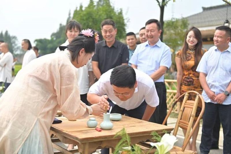 此次活动由成都市天府粮仓国家现代农业产业园管委会、崇州市农业农村局主办,来自成都的文化、旅游、餐饮等各界人士和数百名游客沉浸式参与活动,让参与者“穿越时空”在金色稻田的包围中感受新米独特口感和纯正的风味,为“天府粮仓”新米品鉴、推广创造出一种新鲜模式。