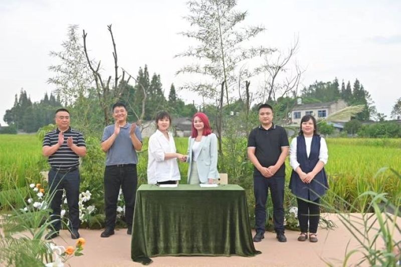 在新米发布活动中,崇州市都市农业发展有限公司与四川众创大成电子商务有限公司签订电商销售协议,共同助力“天府粮仓”新米产品的推广和销售。