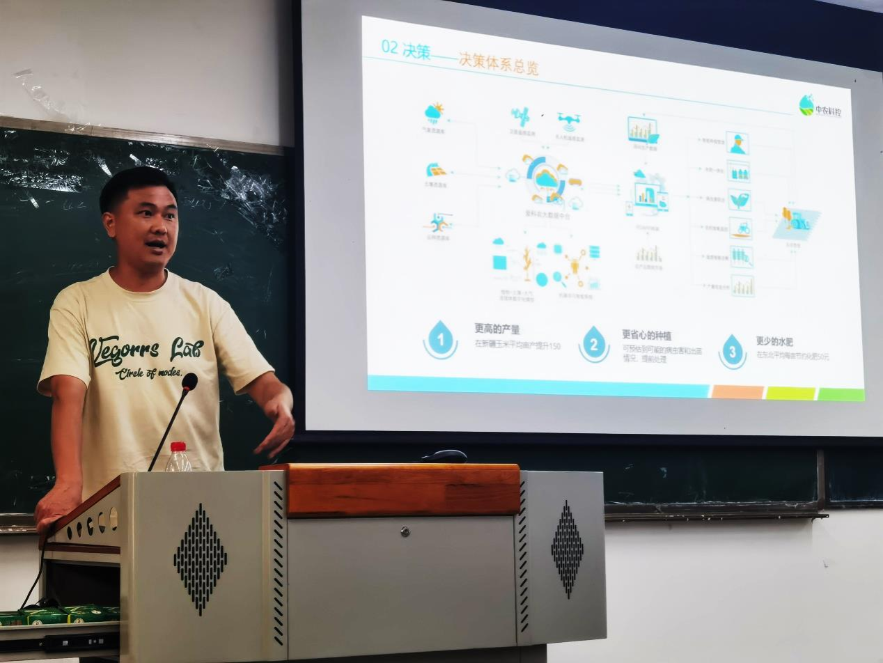 2023年10月27日下午,中国农业大学无人机系统研究院西南区负责人、中农科控农业科技(成都)有限公司创始人胡顺建先生应邀赴公司,以“智能装备和无人农场”为主题为智慧农业专业的新生同学们作了一场智慧农业的专业报告。胡先生长期从事智能机械和无人农场的建设和生产经营,他从一个资深从业者的角度介绍了相关领域的发展历程、重要理念、技术脉络,并以一位学长的身份分享了自己对老员工活和学习中的感悟,从国家发展政策和方法论的角度引导同学们思考自己在智慧农业领域中的职业发展方向和实践路径。