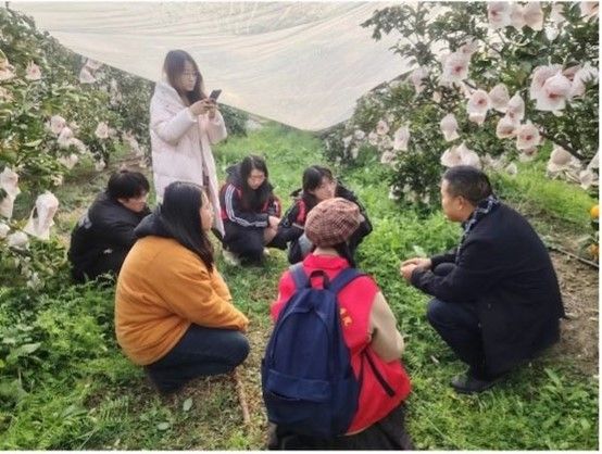 在参观学习的过程中,我们还了解到生物化学和生态学在农业中的重大应用。据农艺师伍万林介绍,橘园的农药化肥用量很低,基本采用多种草本植物杂交为土壤赋能。此外,橘园土壤中埋有鲍鱼壳,在橘园土壤中当作天然磷肥。