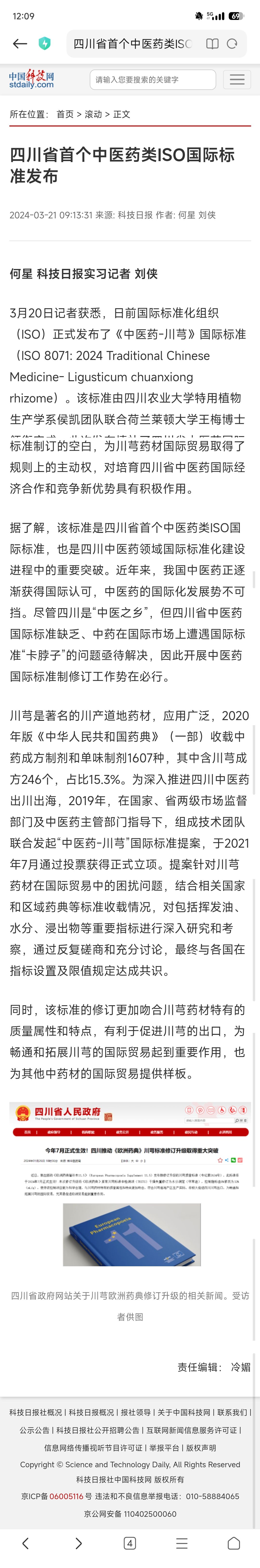 (中国科技网)四川省首个中医药类ISO国际标准发布