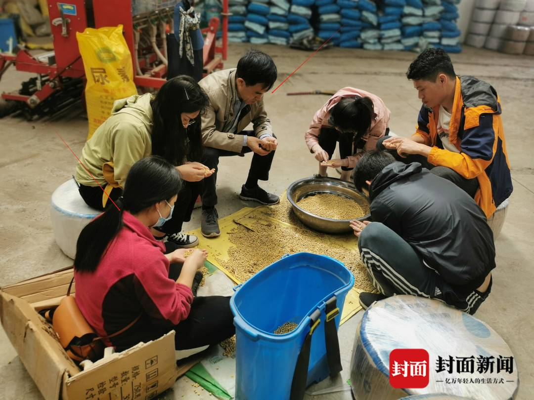杨教授带领吴雨珊和员工们清选种子,为播种做准备。