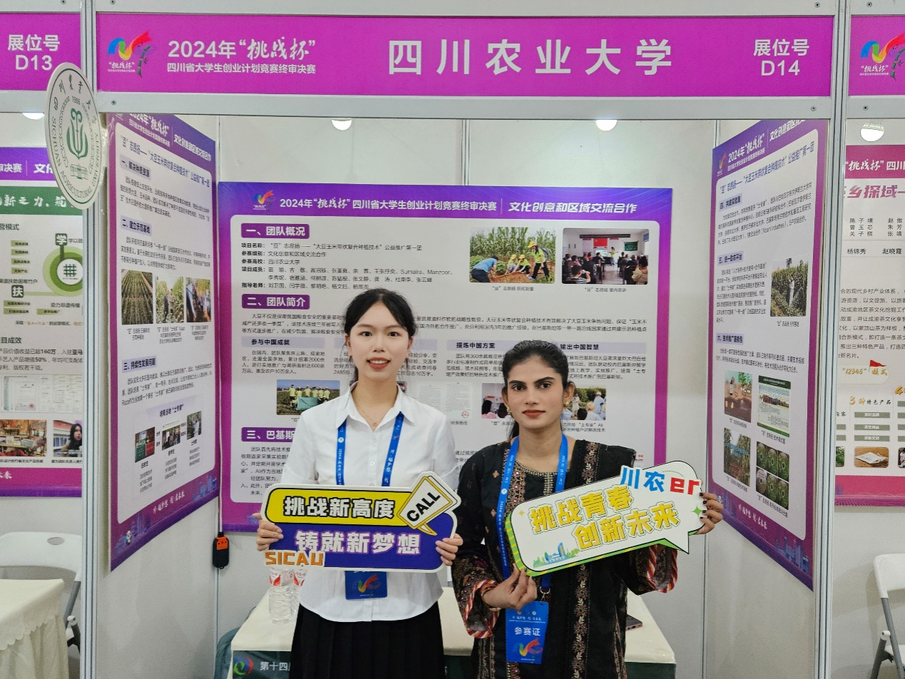 获奖项目团队负责人苗瑜介绍道:“我们团队立足大豆玉米带状复合种植技术,自2021年起广泛参与该项技术的国内推广,并在此过程中积极总结推广经验,形成一套可复制性强、增产效果好的技术推广方案。再充分发挥公司众多巴基斯坦职工的优势,通过建立示范基地、培育‘土专家’、与巴基斯坦巴哈瓦尔布尔伊斯兰大学共建实验室等方式将该项技术推广到巴基斯坦。”谈及组建团队的初心,苗瑜说道:“大豆作为高品质蛋白与优质饲料来源,具有重要地位,然而无论是我国还是巴基斯坦,大豆自给率都严重不足,因此作为农科学子的我们决定通过技术推广为保卫粮食安全贡献出我们的绵薄之力。”据了解,该项目属文化创意和区域交流合作组别,“我们的目标是打造一带一路农耕文化共同体背景下的文化创意新模式。”苗瑜补充道。
