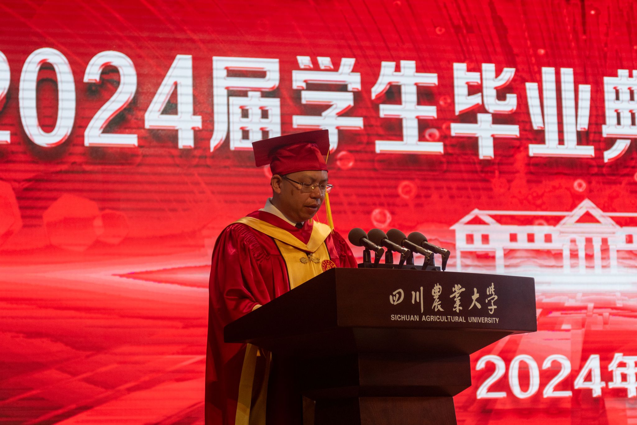 唐城饱含深情的向毕业生们送出了临别致辞,他说到,川农大诞生于国家和民族危难之际,“川农大精神”发端于实业报国实践之中,作为新时代的农学人,要在全面推进乡村振兴,实现农业农村现代化中担当作为,奋力书写好为中国式现代化挺膺担当的青春篇章。祝愿毕业生们在追寻自己的梦想道路上创造出属于自己的灿烂辉煌。道阻且长,行则将至;行而不辍,未来可期。