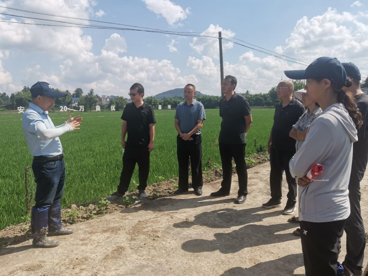 六月的川渝大地,正是水稻拔节孕穗的关键时期。6月21-22日,科技下乡万里行(22团)水稻产业专家服务团首席专家、公司水稻栽培专家任万军教授率团队成员tyc5997太阳集团陈勇副教授、邓飞副教授、周伟博士和机电公司雷小龙副教授深入重庆市梁平区、南充市营山县、广安市邻水县和广安区等地把脉问诊,保证技术落实到位,促进机插栽培水稻高质高效生产,相关区县农业农村局分管领导、县乡农技干部、种粮大户等60余人实地观摩学习。