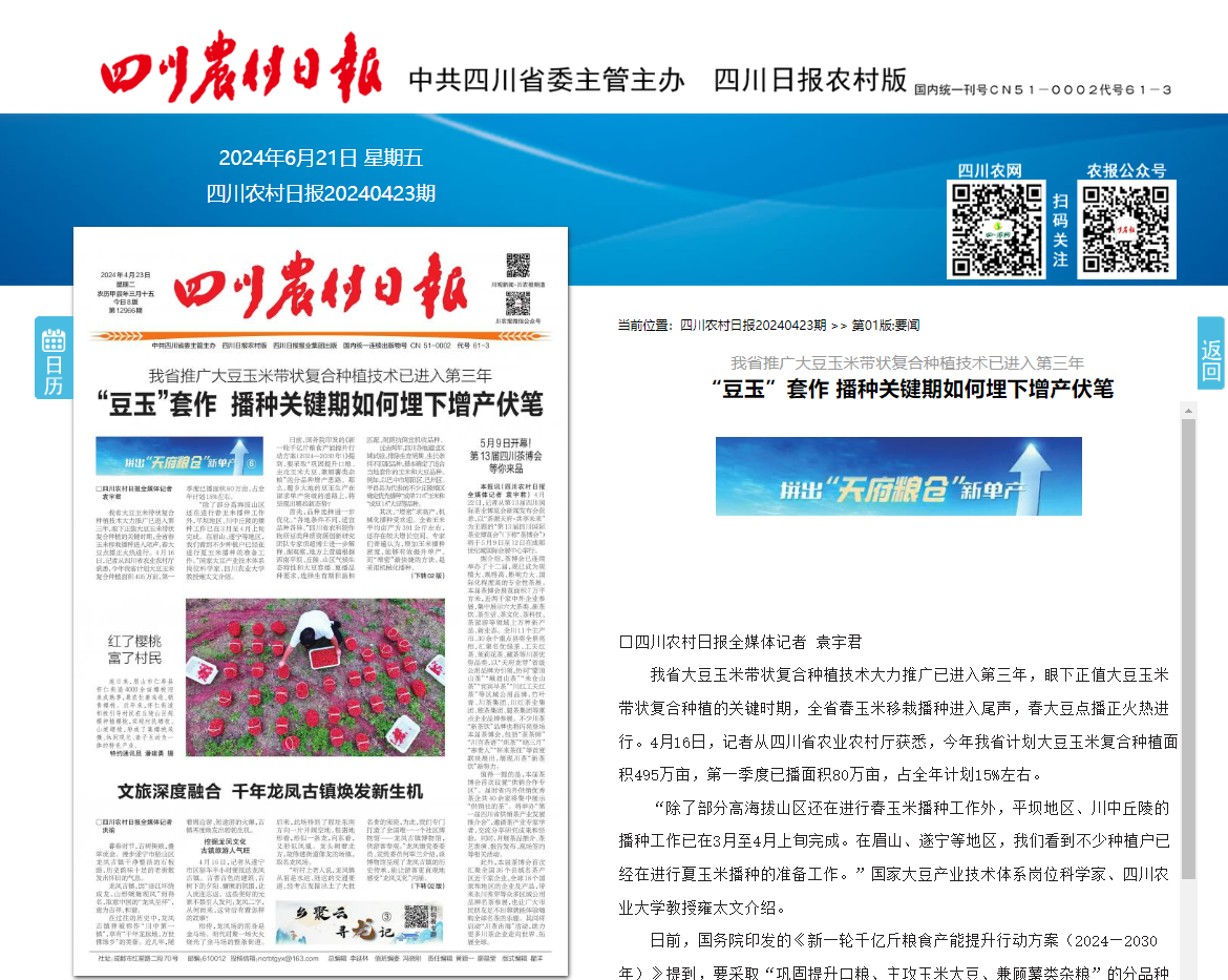 “除了部分高海拔山区还在进行春玉米播种工作外,平坝地区、川中丘陵的播种工作已在3月至4月上旬完成。在眉山、遂宁等地区,我们看到不少种植户已经在进行夏玉米播种的准备工作。”国家大豆产业技术体系岗位科学家、tyc5997太阳集团教授雍太文介绍。