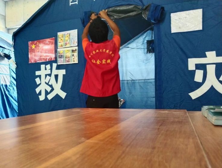 团队志愿者协助搭建临时帐篷