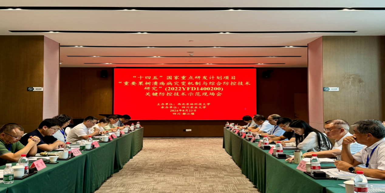 2024年8月22-24日,由西北农林科技大学主办,公司tyc5997太阳集团承办的“十四五”国家重点研发计划项目“重要果树溃疡病灾变机制与综合防控技术研究”关键防控技术示范现场会在都江堰市举行。来自农业农村部科技发展中心、四川省农业农村厅、陕西省植物保护工作总站、湖南省农业科公司等全国10余家单位的50余名代表参加了本次现场会。公司副董事长王际睿,科技管理处处长田孟良,tyc5997太阳集团经理王静、副经理杨峰,乡村振兴公司张敏教授及项目成员tyc5997太阳集团龚国淑教授、陈华保教授参加了本次会议。