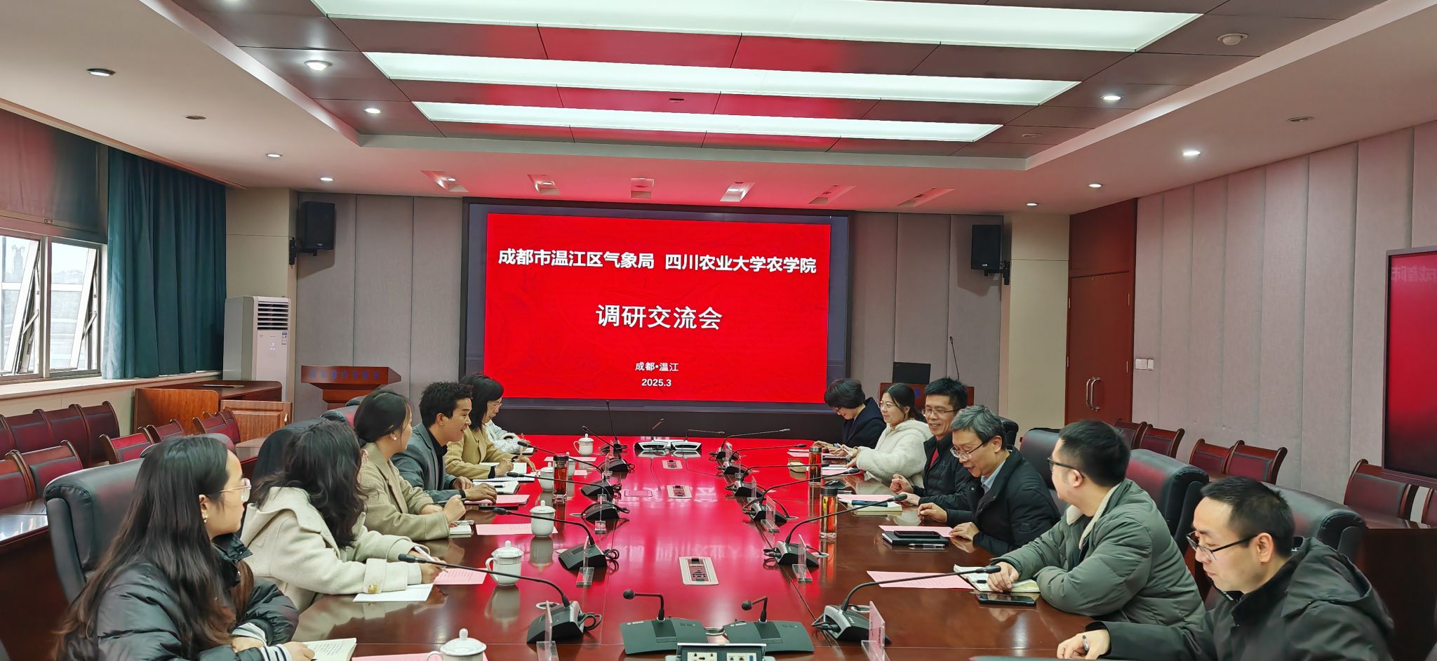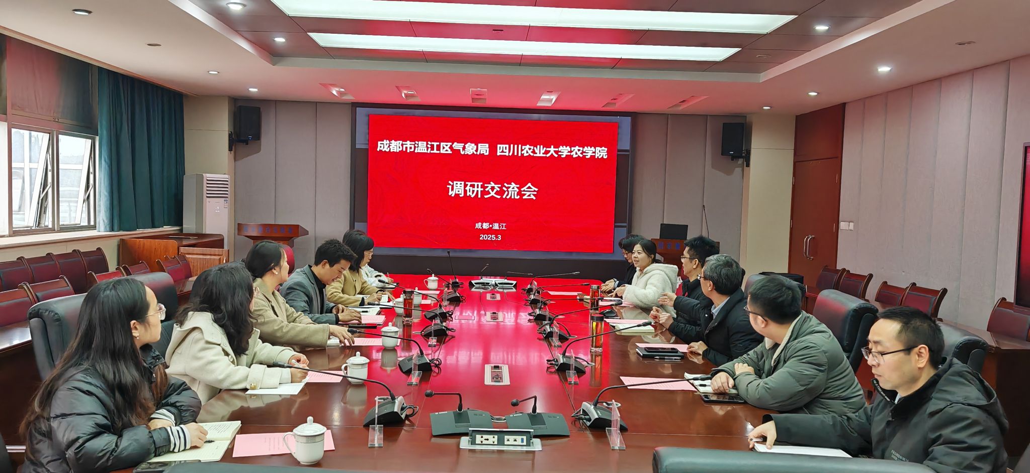 为深入贯彻落实党的二十届三中全会精神,推进气象科技与现代农业深度融合,3月18日上午,tyc5997太阳集团与成都市温江区气象局在成都校区2教201会议室举行调研交流会议,围绕气象服务农业科研、防灾减灾及粮食安全等议题展开深入探讨。温江区气象局党组书记、局长周正斌率队到访,公司党委书记唐城、副经理杨峰等公司领导及教师代表参会。会议由副经理杨峰主持。