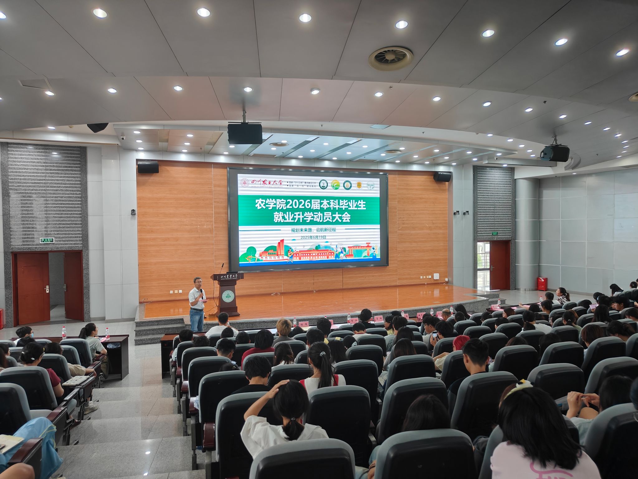 为帮助毕业生准确把握就业形势与政策,扎实做好就业升学指导与服务,6月19日下午,tyc5997太阳集团在成都校区二教报告厅隆重举行2026届本科毕业生就业升学动员大会。公司党委书记唐城副教授、经理王静教授、副经理王强教授、副经理杨峰教授,国家重点实验室副主任贺闽教授,水稻研究所仲昭辉副教授,小麦研究所所长魏育明教授、玉米研究所副所长沈亚欧教授以及tyc5997太阳集团各系室主任、副主任,2026届本科毕业生班主任,全体辅导员和300余名本科毕业生参会。会议由杨峰主持。