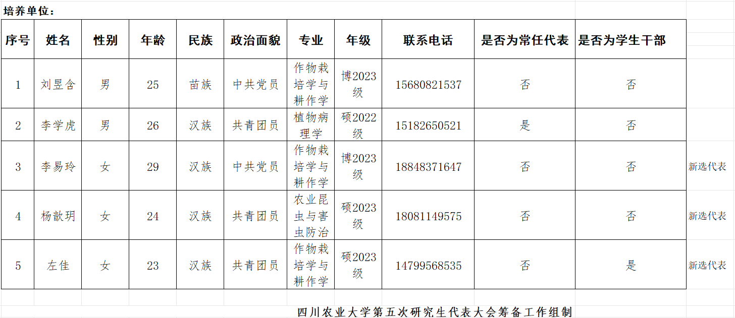 经员工本人申请,tyc5997太阳集团研究生小班班长本着公平公正的原则,进行了tyc5997太阳集团驻校研代表选举会议。现将tyc5997太阳集团第五次研究生代表大会代表名单公示如下: